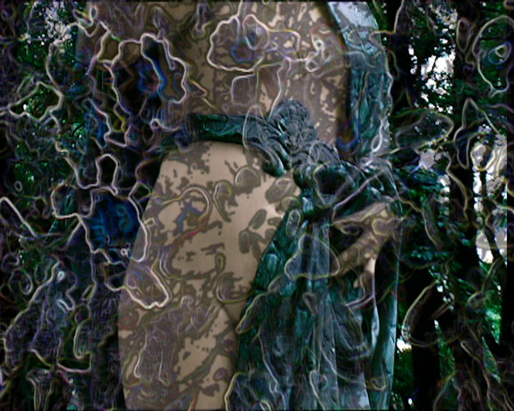 De graves traverses d'agonie semblent scander une sourde rumeur... La perspective se change d'elle-même, elle se détourne de sa propre apparence, façonne et rnodèle de plus sauvageshorizons, de plus insaisissables constellations encore...Quelques entrelacs d'arabesques croisées se laissent néanmoins deviner pour un temps encore.