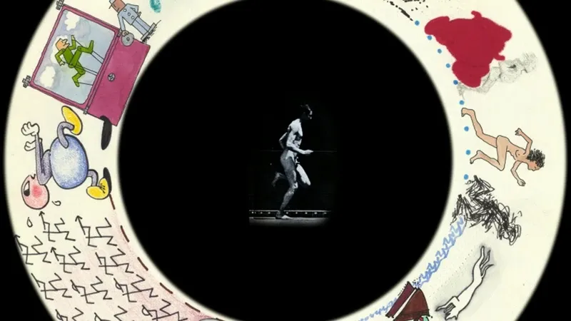 Un hommage de G. Griffin aux études photographiques de Muybridge sur la décomposition du mouvement, par le biais de personnages animés courant en cercle.