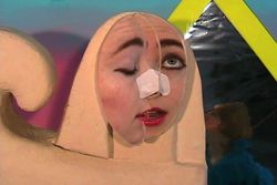Cynthia se retrouve confrontée à son reflet déformé dans le miroir qui alterne entre le grotesque et l'exotisme selon sa position. Alors qu'elle s'adonne au nettoyage des pores de son nez devant le miroir, un sphinx apparaît et lui chante une chanson extraite du film d'animation The Last Unicorn.